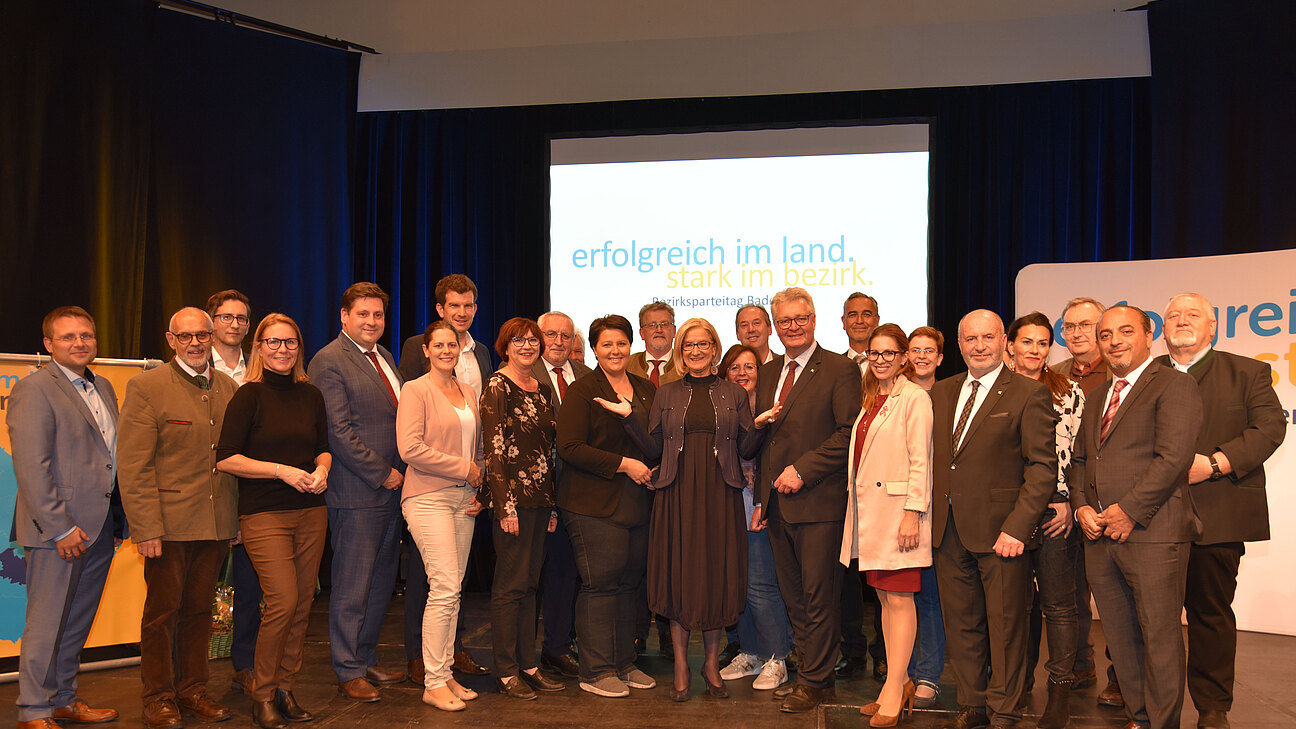Anlässlich des Bezirksparteitages der Volkspartei Bezirk Baden blickte LAbg. Christoph Kainz in seiner Rede auf die Arbeit und die Erfolge der letzten Jahre zurück. „Wir haben große Herausforderungen gemeistert und wichtige Projekte für unseren Bezirk und unsere Region umgesetzt. Herausragend war dabei sicherlich der Neubau des Landesklinikums in Baden, für den wir uns wirklich sehr eingesetzt haben. Ganz wichtig für den Bezirk sind die Hochwasserschutzbauten entlang der Triesting, der Schwechat und der Leitha. Projekte in der Größenordnung von insgesamt fast 100 Millionen Euro sind dafür bereits fertiggestellt oder derzeit in der Bau- und Planungsphase. Auch für Gastronomie und Tourismus konnten wir einiges in der Thermenregion bewegen. Die sehr erfolgreiche Genussmeile entlang der Wiener Wasserleitung, an der viele Gemeinden mitmachen, ist ein gelungenes Beispiel dafür.“