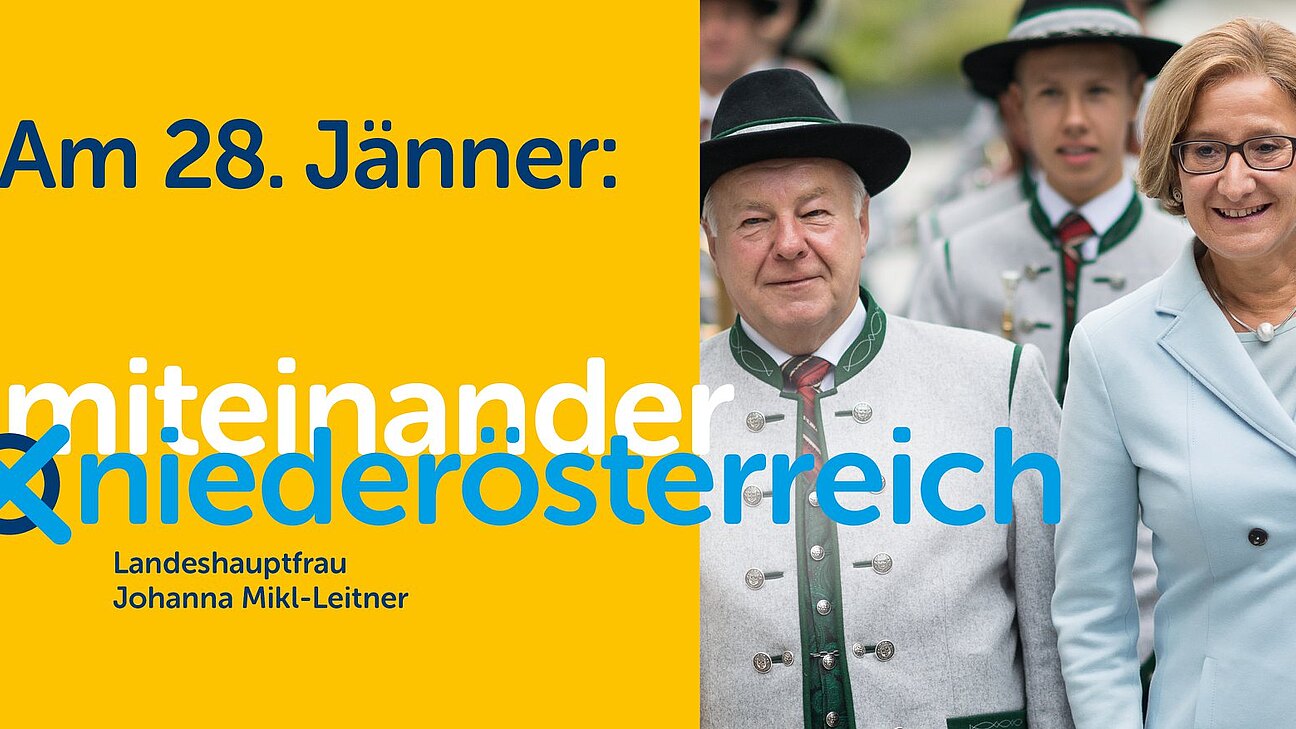 Das Miteinander im Land kann man am 28. Jänner wählen. Mit einer Stimme für Landeshauptfrau Johanna Mikl-Leitner. NÖ ist wie kein anderes Bundesland. Unser Land ist die Verbindung von städtischen Räumen und ländlichen Regionen. Uns geht es um Chance in der Stadt - und um Zukunft für den ländlichen Raum.